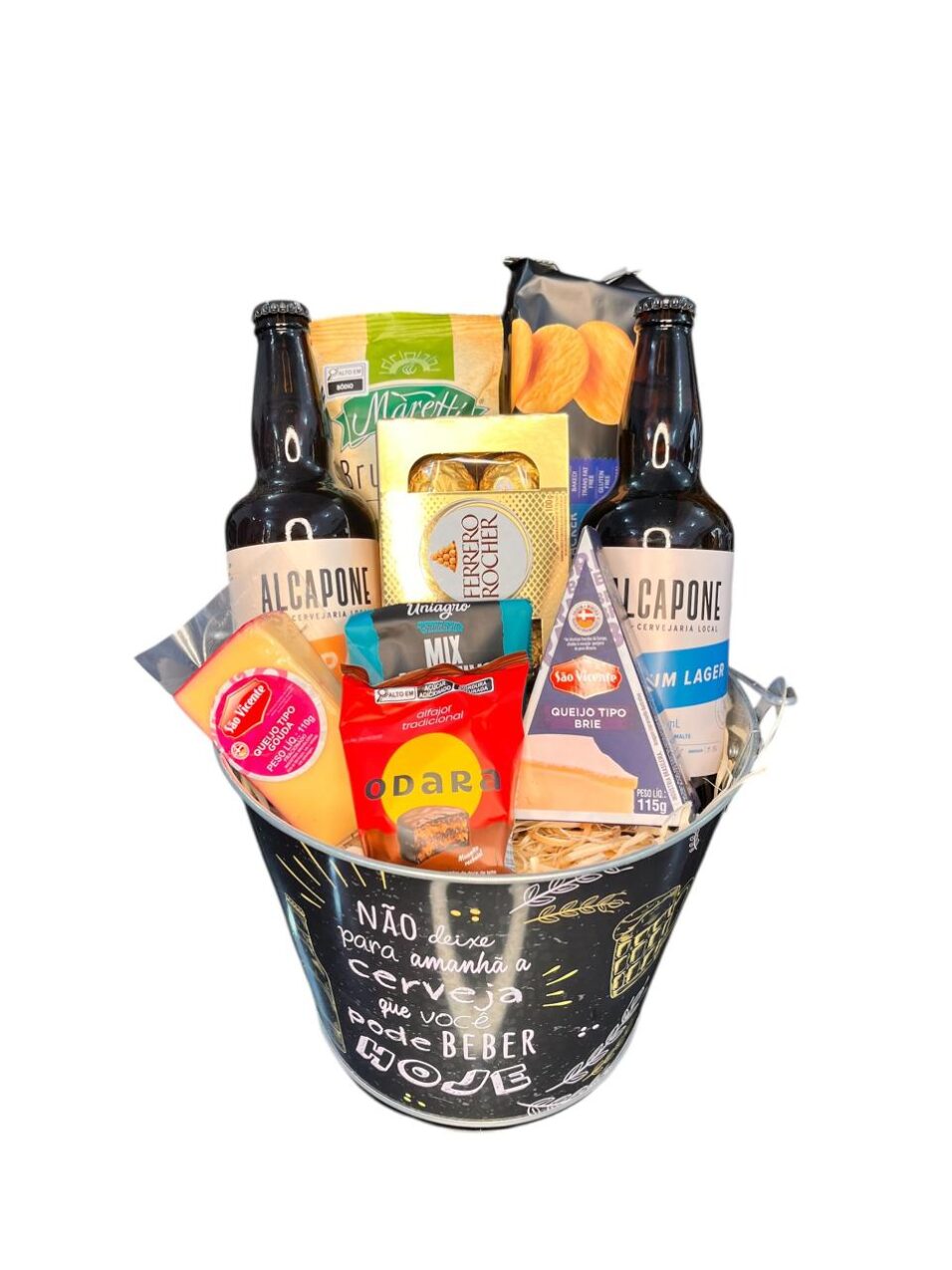 Observação: O balde será embalado com celofane transparente e laço decorativo.